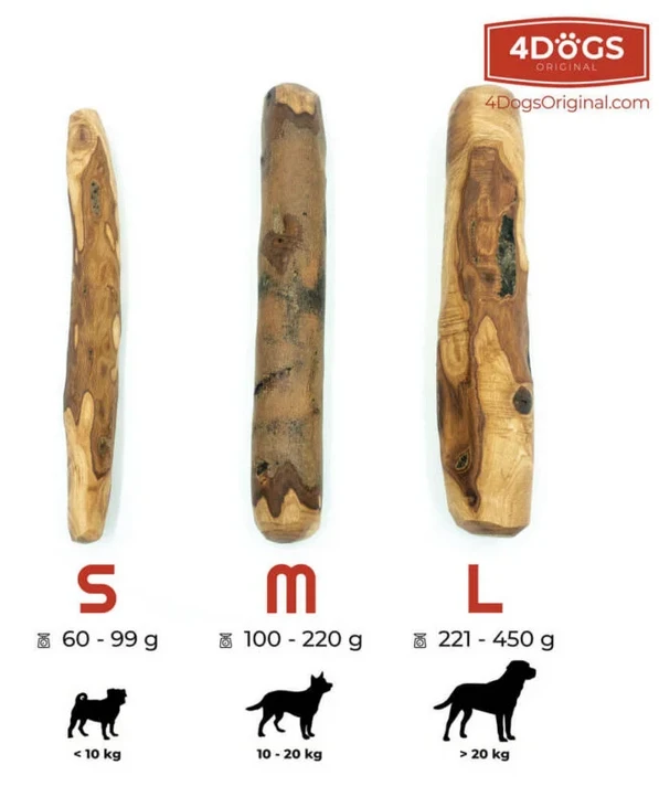 Vous vous demandez en quoi un bâton d’olivier est meilleur qu’un bâton ordinaire trouvé dans une forêt ou un parc ? Dans le cas de bâtons provenant de nos forêts, surtout s’ils sont séchés, il y a toujours le risque qu’ils se brisent et que des échardes blessent le museau du chien. Toutefois, lorsqu’ils sont utilisés et mâchouillés pendant une longue période, les bâtons d’olivier deviennent mous à l’extérieur, ce qui permet aux chiens d’arracher les fibres extérieures souples. Ces produits sont totalement sûrs pour le chien et peuvent même être mangés par lui – ils ne doivent pas lui nuire. Il convient également de mentionner que les bâtons d’olivier ne libèrent pas de résine, qui pourrait nuire à votre chien.