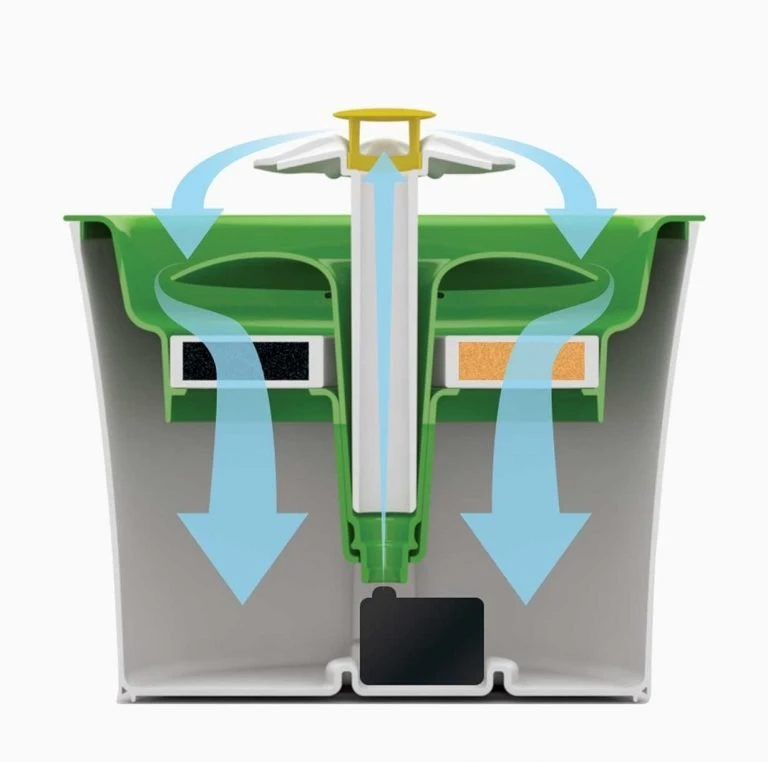 L’abreuvoir Catit Flower convainc également par son design compact et ergonomique. À l’intérieur se trouve un récipient opaque d’une capacité de 3 litres, qui prend peu de place.