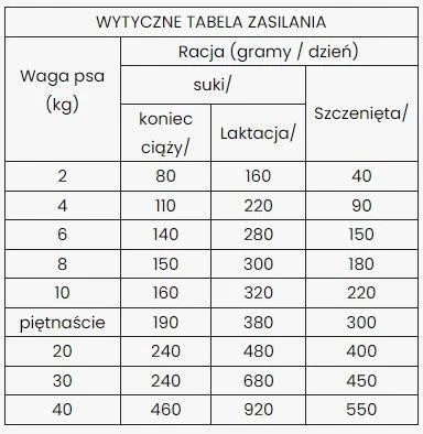 GUIDELINES TABLEAU D’APPROVISIONNEMENT Poids du chien (kg)Ration (grammes/jour)chiennes/chiots/fin de gestation/lactation/280160404110220906140280150815030018010160320220quatorze190380300202404804003024068045040460920550