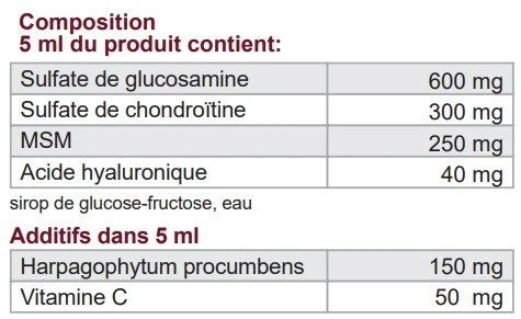 La glucosamine et la chondroïtine sont des composants essentiels du liquide articulaire et du cartilage, responsables de la bonne alimentation de l’articulation.