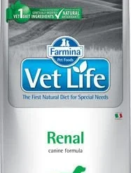 Farmina Vet Life Renal est un aliment diététique complet pour chiens destiné à soutenir la fonction rénale en cas d’insuffisance rénale chronique ou temporaire.