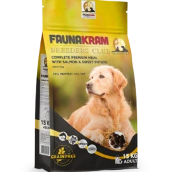 Ce produit est l’un des meilleurs repas de Faunakram et contient 20 % de saumon. Le saumon a une teneur élevée en acides gras oméga 3 saturés, que le chien ne peut pas produire lui-même, tout en contribuant à un pelage brillant et à une perte de poils réduite. En outre, la formulation contient de la patate douce et de la graisse de poulet, ce qui garantit une très bonne acceptation gustative par le chien.