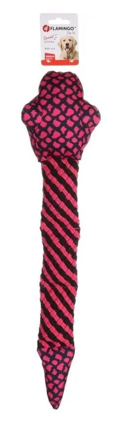 Serpent fabriqué dans un matériau durable. Comprend un couineur avec un son crépitant que votre animal adorera. Pour ajouter de la variété au jeu, le tuyau est fini avec différentes textures (corde).