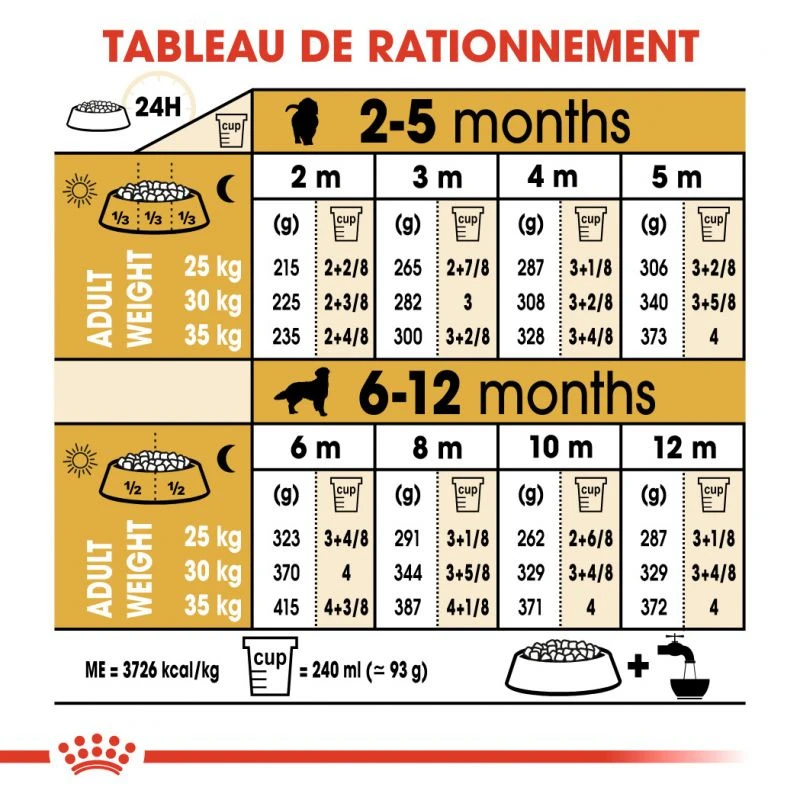 L’ajout d’acides gras oméga 3, dont l’EPA et le DHA, et d’huile de bourrache renforce l’imperméabilité de la barrière cutanée. Pour favoriser la santé gastro-intestinale, les croquettes ROYAL CANIN pour chiots Golden Retriever contiennent des protéines de haute qualité et des prébiotiques. Ces ingrédients contribuent également à maintenir l’équilibre de la flore bactérienne intestinale, ce qui favorise des selles de consistance correcte.