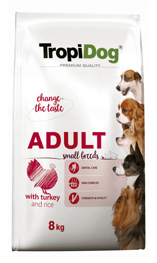 Tropidog Premium Adult Small Breeds avec dinde et riz 8kg – Description du produit