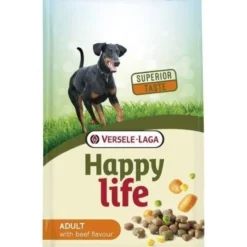 Happy life Adulte au goût de Bœuf est un aliment délicieux et varié qui fournit tous les éléments nutritifs nécessaires à la vitalité du chien adulte