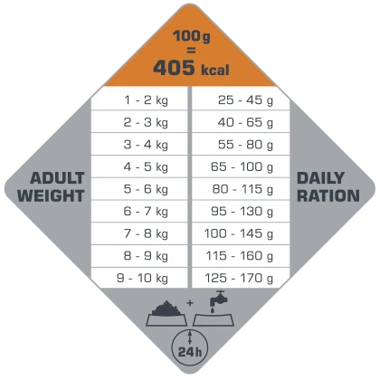 - Un granulé extrêmement savoureux et d’un diamètre adapté de 9 mm assure une ingestion facile