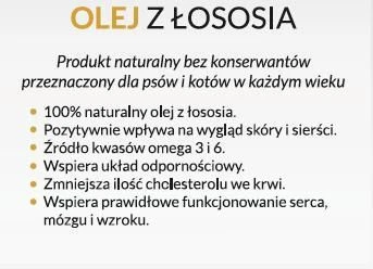 L’huile 100% pure de saumon norvégien est un additif idéal pour améliorer l’appétence des aliments. Les acides gras ont un effet positif sur l’immunité et l’apparence de la fourrure et de la peau, et sont utiles en cas d’allergies cutanées et de maladies du système squelettique. En outre, l’huile de saumon pour chiens contient des acides gras DHA et EPA qui ont un effet positif sur le cerveau et les yeux, et contribuent au bon fonctionnement du cœur et du système nerveux. Produit naturel sans conservateur pour les chiens de tous âges.